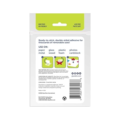 - REMOVABLE ADHESIVE WITH NO MESS: Our clear Glue Dots require no solvent, water, or heat to activate and can easily be removed or repositioned without leaving behind stains or sticky residue