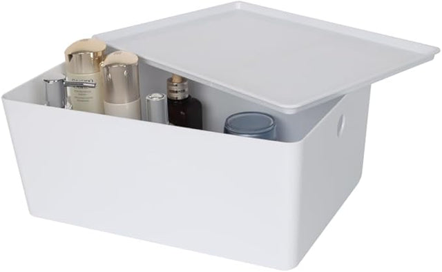 Storage Basket w/Lid White (14" x 10.4" x 6")