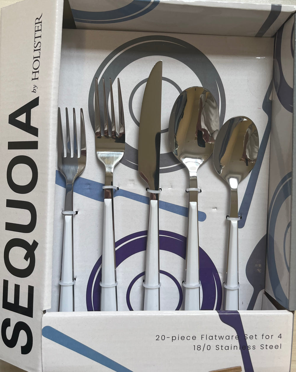 White Cutlery Set 20PC Sequoia is backordered and will ship as soon as it is back in stock.