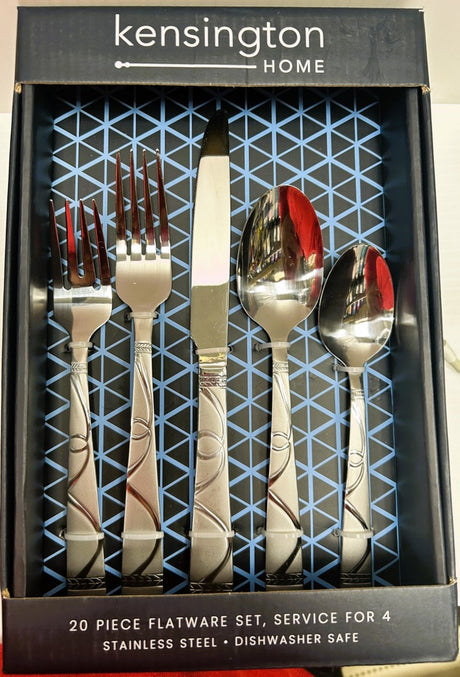 $89.99Unit price /UnavailableVery low stock (1 unit)Stainless Steel Flatware 20pc | Jubilee Frost | Silver | Kensington Home