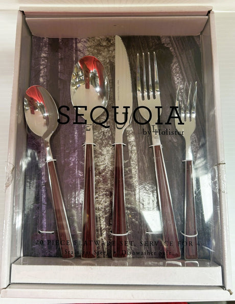 $35.99Unit price /UnavailableVery low stock (6 units)20pc Flatware Set Sequia | Cherry Wood | Stainless Steel | Holister