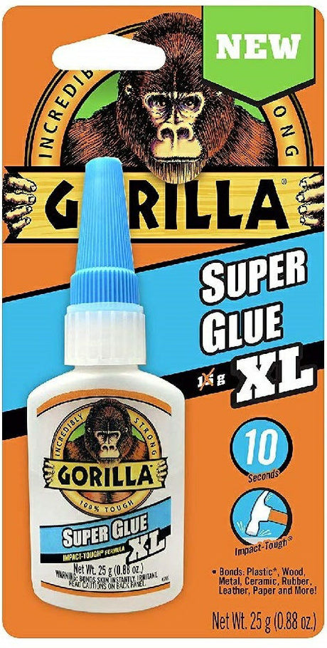 $11.99Unit price /UnavailableVery low stock (1 unit)Gorilla Super Glue XL 25g | Clear | Fast-Setting & Impact Tough