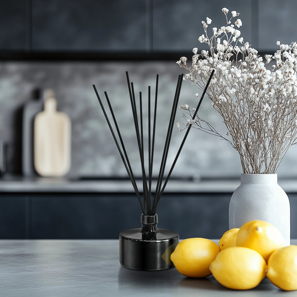 Scent in Style with the Glistening Black Reed Diffuser. Elevate your space with a statement piece that looks and smells amazing.