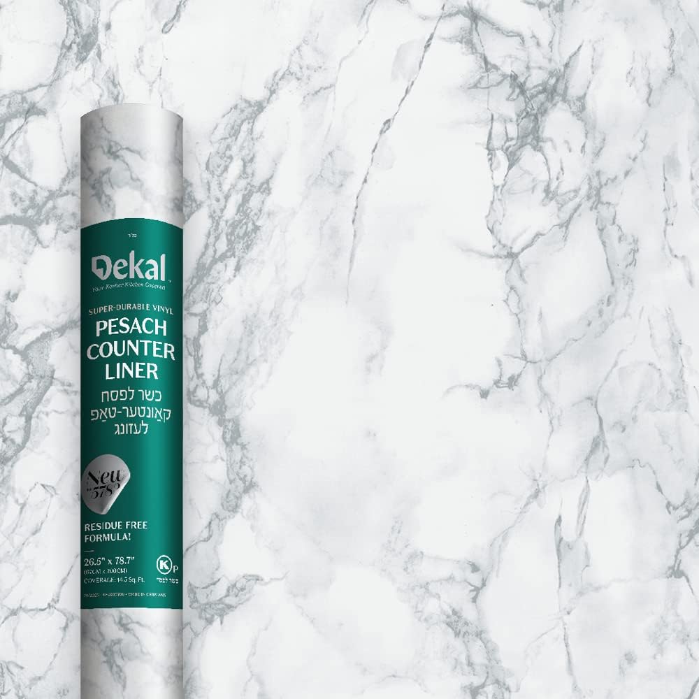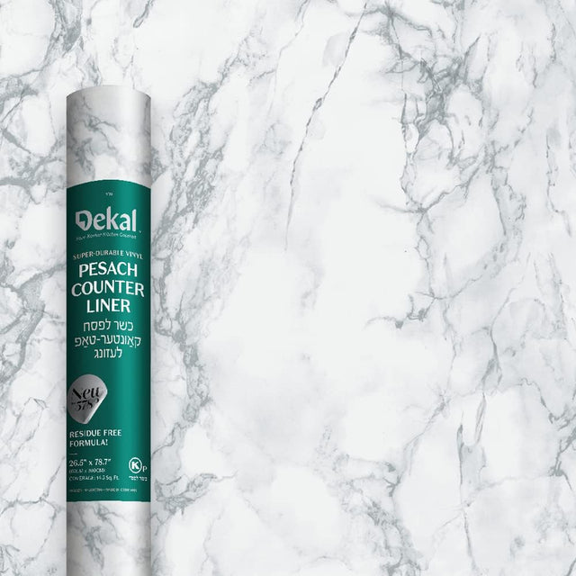 This Pesach Counter Liner features a sleek gray marble design, providing both practicality and elegance. The thin and durable material easily protects counters from spills and scratches. With the Pesach Counter Liner, you can elevate your holiday preparations while keeping your kitchen clean and organized.