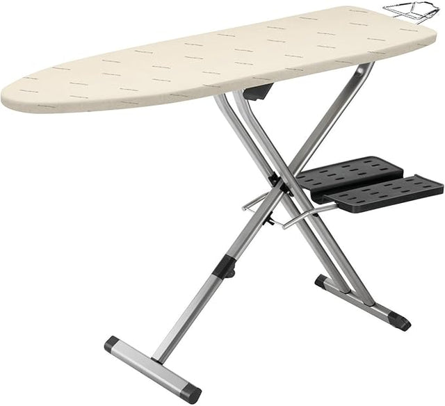 Integrated Features: Includes a hanger rack, extra-large steam iron rest, and a shelf for accommodating steam stations, enhancing your ironing efficiency.