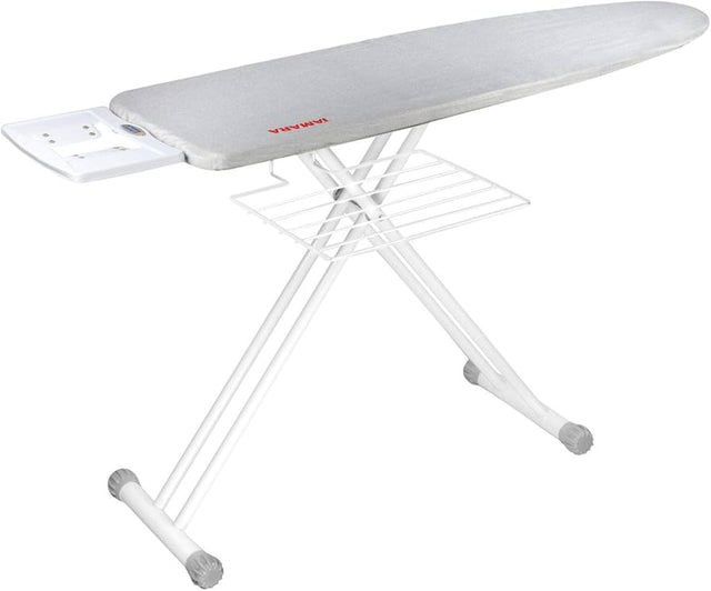 Tamara Metal Ironing Board from YBM is designed for efficient and convenient ironing. With a spacious 17x50 inch surface, this Metal Ironing Board provides ample space and a well-padded cotton cover with heat-resistant Teflon for pressing, ensuring a smooth, wrinkle-free finish.