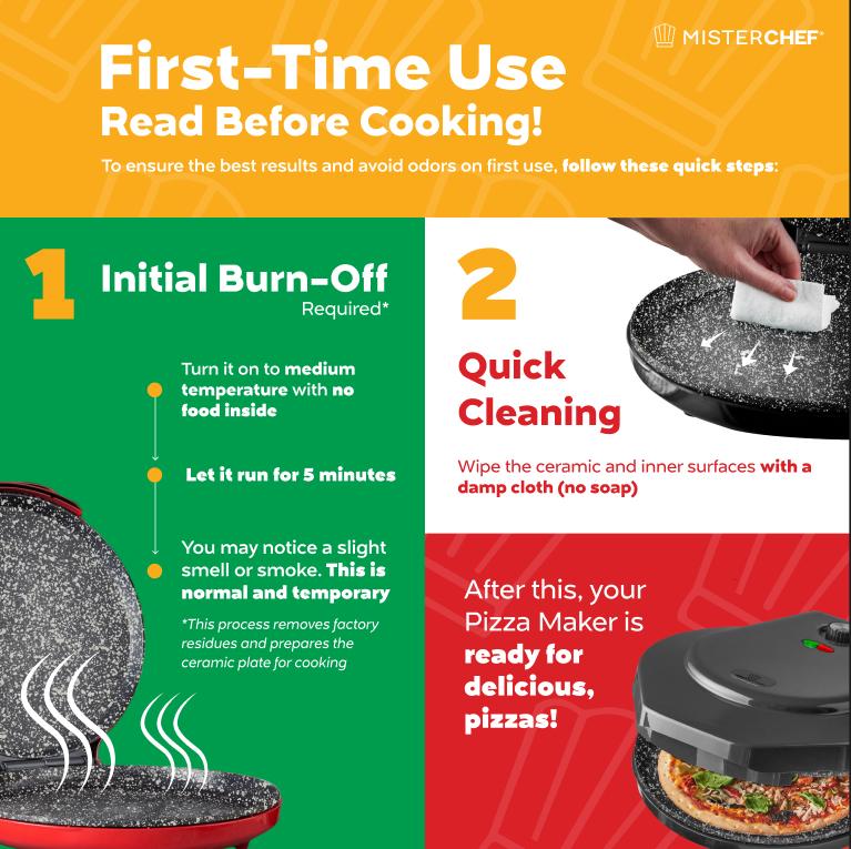- MULTIPLE USES: The MisterChef electric pizza maker machine can cook much more than just pizza. Use it for omelets, pancakes, crepes, scrambled eggs, quesadillas, nachos, mini frittatas, giant cookies, hors d’oeuvres, and more. Available in colors red, black, and cream.
