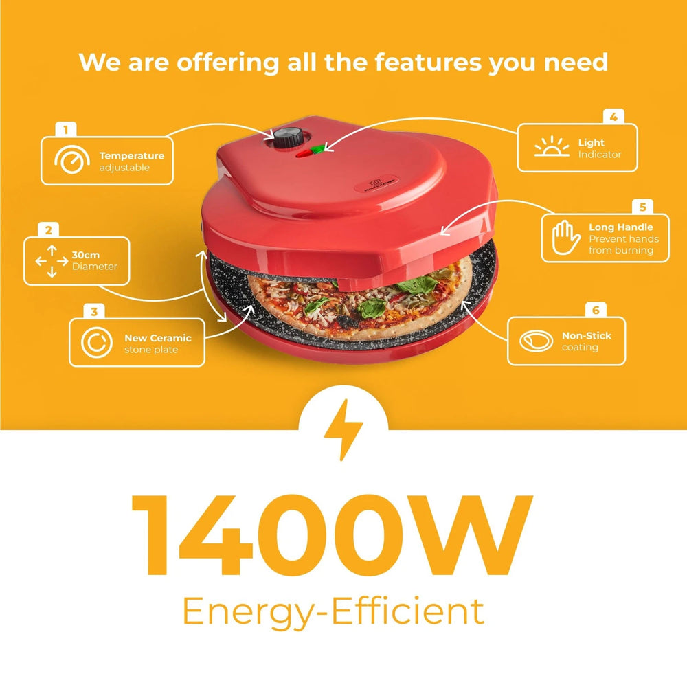 - FAST COOKING: This electric pizza cooker has a 1400W/ 1450W high-powered motor. It can cook your favorite pizza in under 10 minutes.