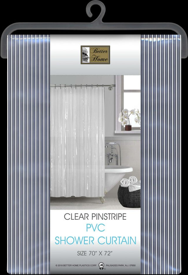 Better Home Clear Pinstripe PVC Shower Curtain 70"x72" brings modern style and waterproof protection to your bathroom. Made from durable PVC, this transparent shower curtain features subtle vertical pinstripes that add texture while allowing light to pass through—keeping your bathroom feeling open and airy.
