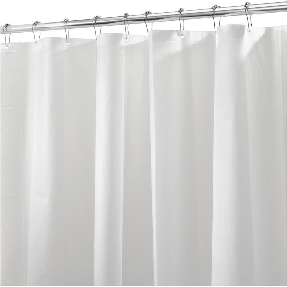 InterDesign Shower Liner Frost 72"x72" offers eco-friendly durability with a clean, semi-private look for your bathroom. Made from PEVA/EVA—both PVC-free and chlorine-free—this liner is waterproof, mildew-resistant, and safe for the environment. Its frosted design provides privacy while still letting light filter through, helping your bathroom feel open and bright.