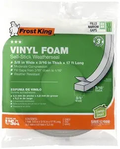 $100.00Unit price /UnavailableVery low stock (1 unit)Weathstrip/White Foam Stick-On 3/8" x 17' Frost King