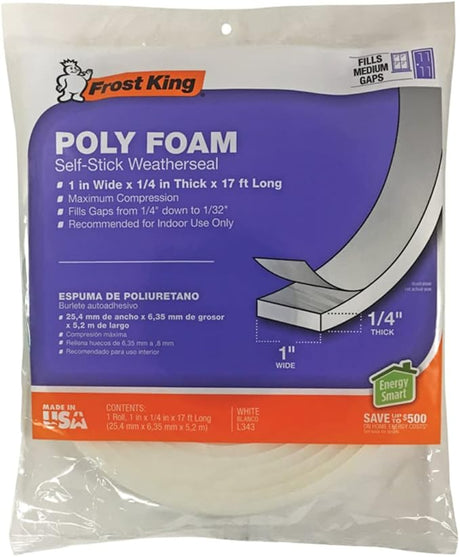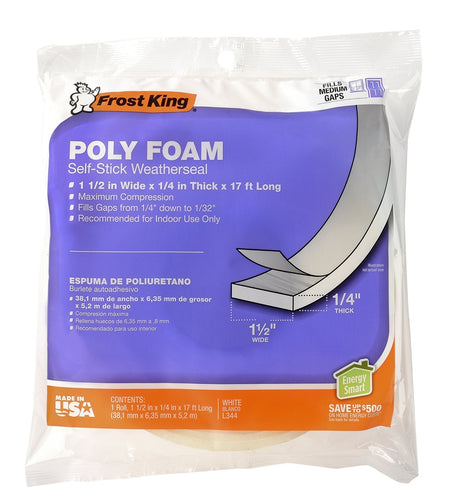 $4.49Unit price /UnavailableVery low stock (7 units)Weathstrip/White Foam Stick-on 1.5" x 17' Frost King