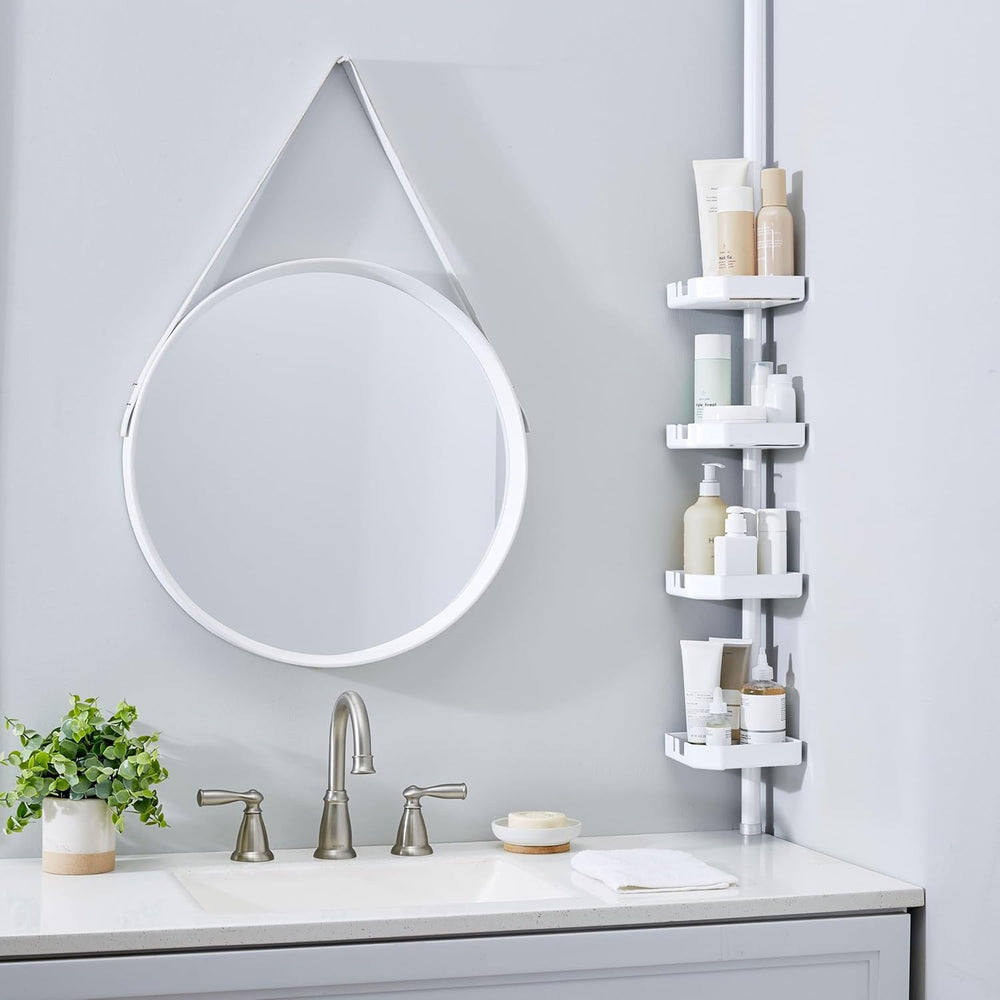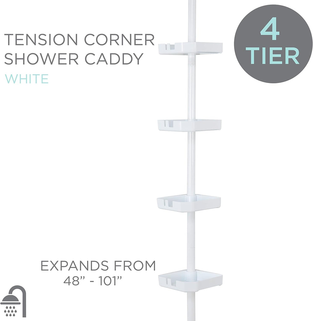 - EASY INSTALLATION: This shower corner shelf is easy to install with the spring-loaded tension rod. The rod tension mount