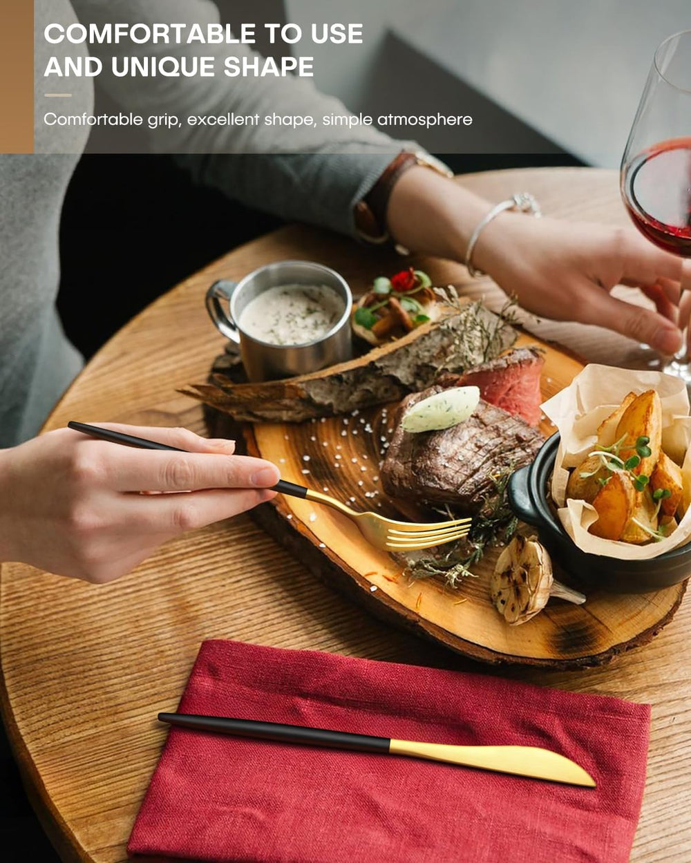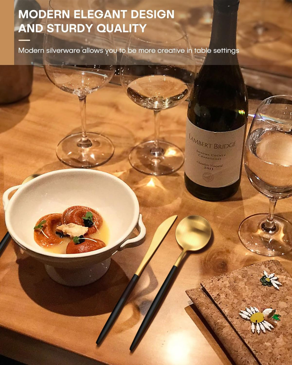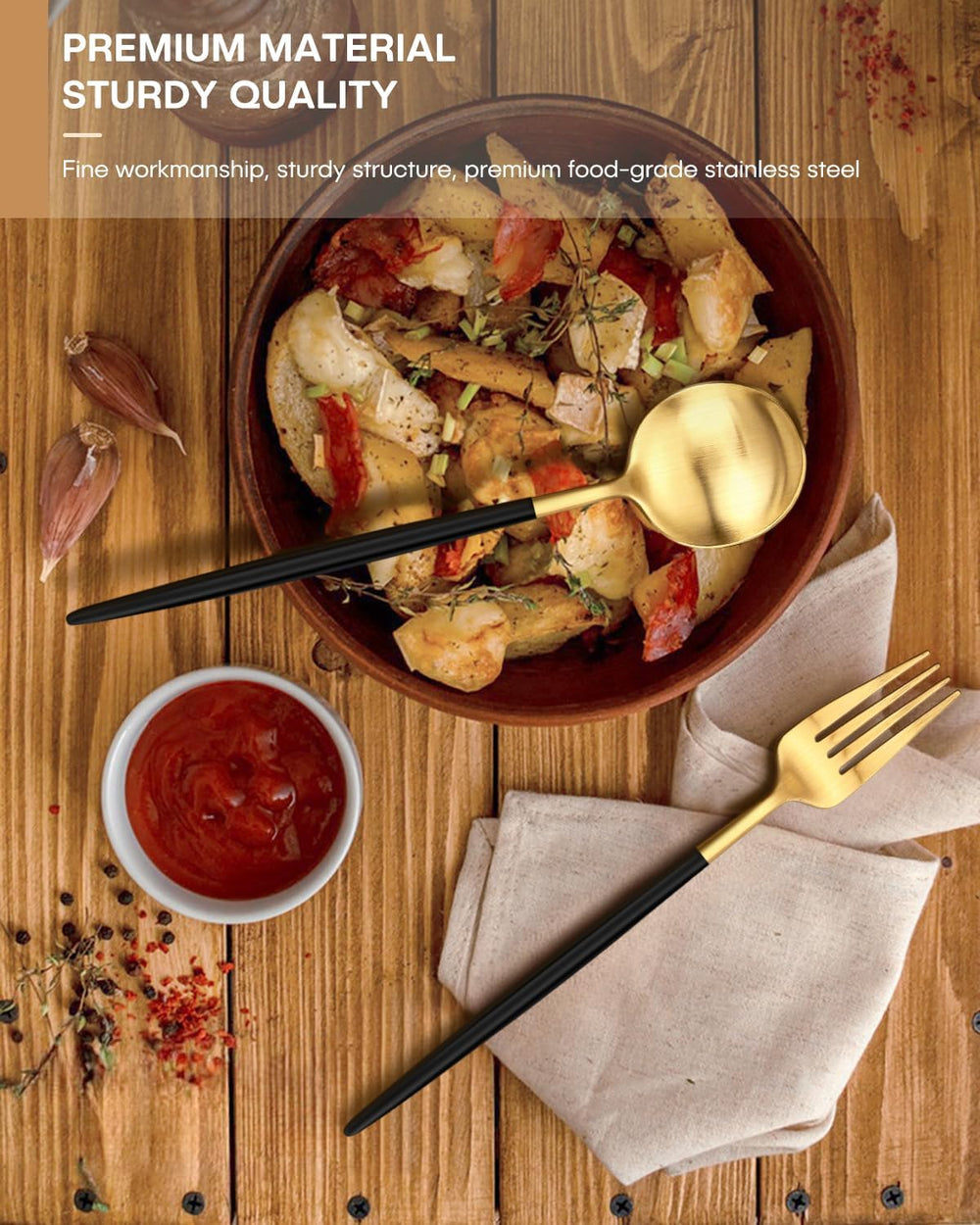 20-piece flatware set with striking black–gold handles