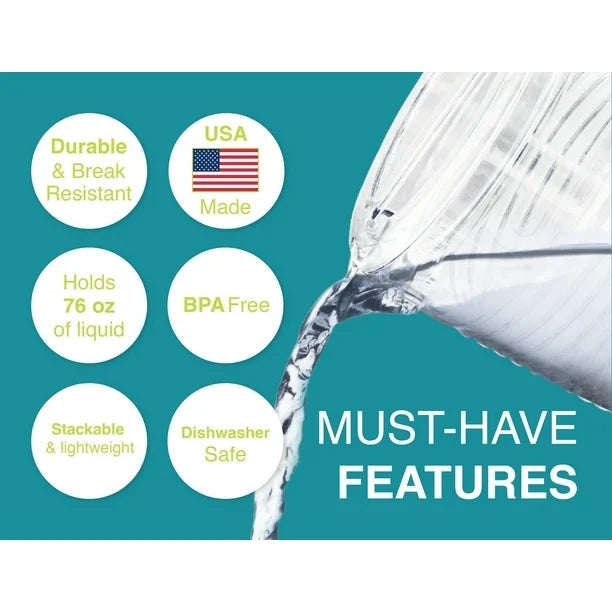 Perfect for busy households, this pitcher is made from durable, BPA-free plastic that resists cracking and staining. Its functionality and sleek form make it a staple for both casual and formal occasions alike.